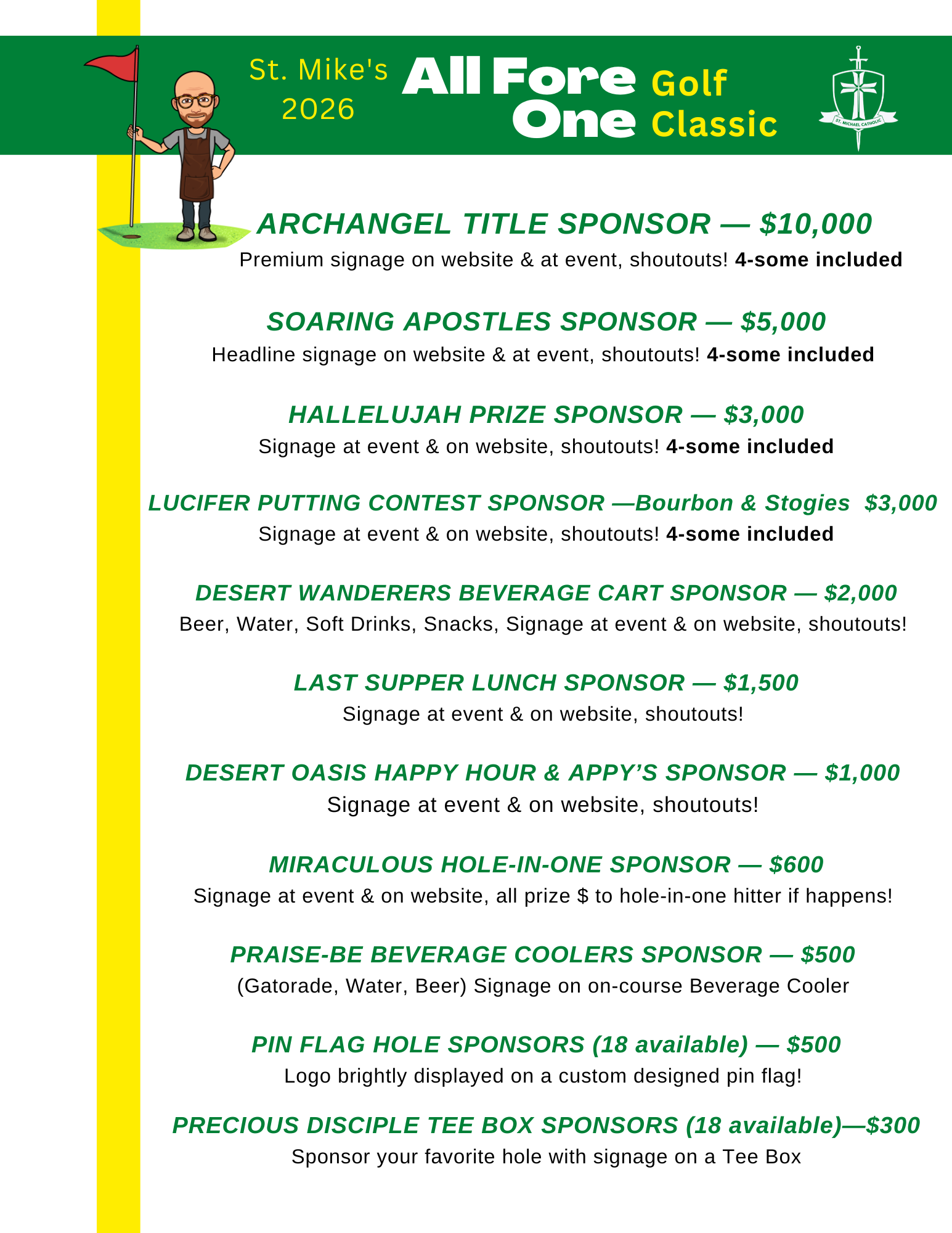 Join us for lunch, 4-man scramble, prizes, cash bar, and lots of fun at this popular fundraiser!